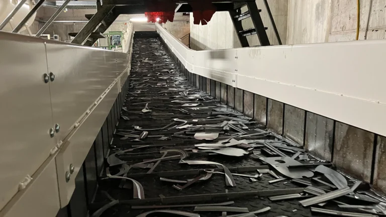 Die Entfernung und der Transport von Aluminiumstanzschrott aus Pressvorgängen erfordern eine robuste, flexible und leistungsstarke Fördertechnik.